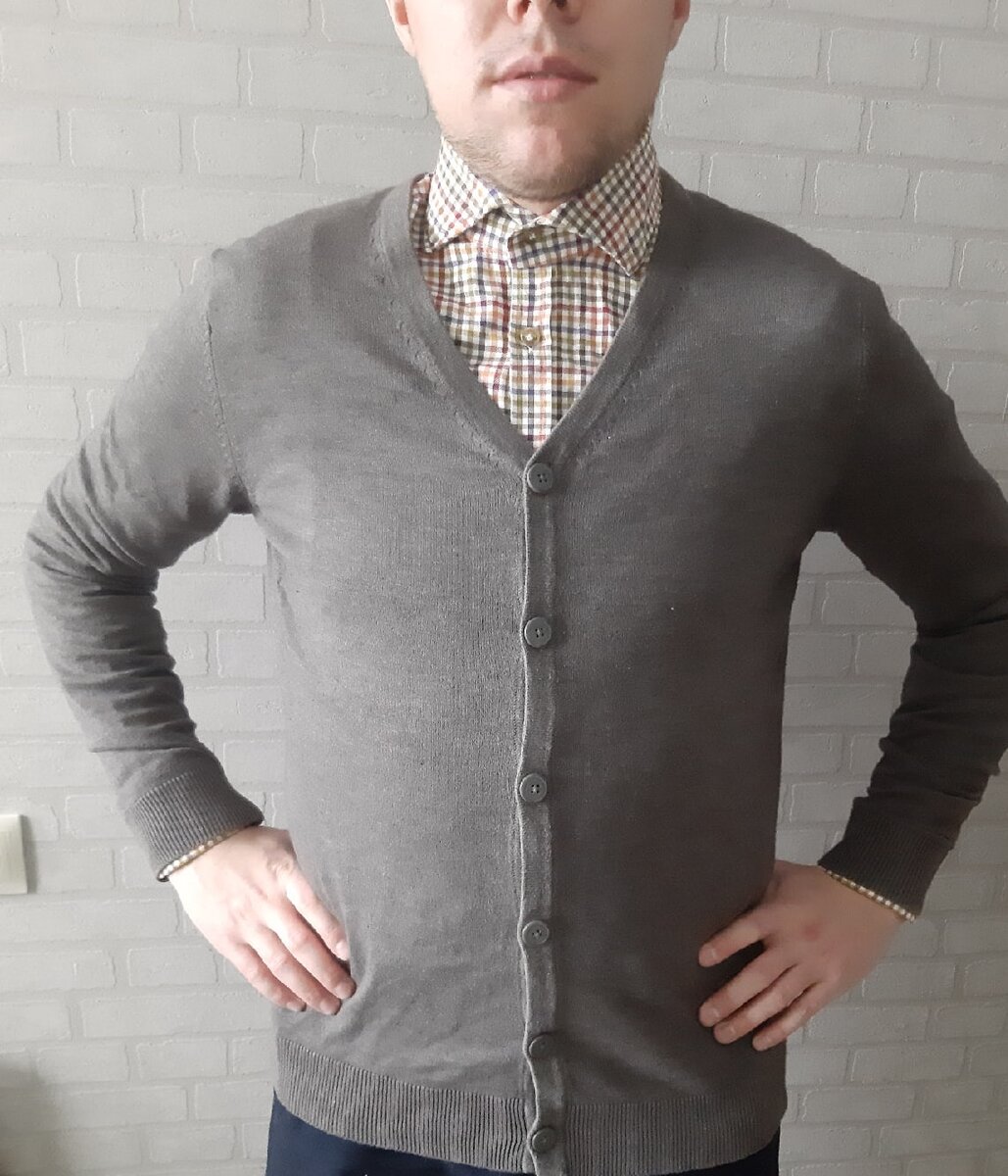 Вот такой вот серый кардиган в идеальном состоянии. Материал 100% хлопок, сел очень хорошо.