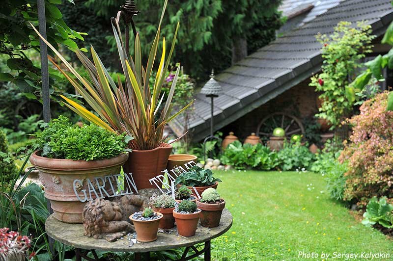 Любовь к декорированию у хозяина этого немецкого сада в крови – тут и там расставлены вазоны всех фасонов, всевозможные опоры для вьющихся растений, скульптура из терракоты, дерева, ржавого металла и даже стекла. Похоже на сад-музей, но это сад-выставка: многое из этого декора можно купить. Сад Ульбрих (Garten Ulbrich) находится в городе Золинген, между Кельном и Дюссельдорфом, земля Северный Рейн – Вестфалия. Владелец сада - Торстен Ульбрих – по профессии флорист. Из поколения в поколение семья занималась выращиванием и продажей растений, и Торстену в наследство досталась территория бывшего питомника: 80 соток земли, огромные ели и сосны, дающие тень, старые теплицы. Одну из них удалось восстановить (в ней выставляются флористические композиции), от других остался только фундамент. Территорию осваивали шаг за шагом. Первым делом облагородили фундамент от старой теплицы и разбили в его границах регулярный сад с бордюрами из самшита и цветниками. На данный момент гости сада могут пройт