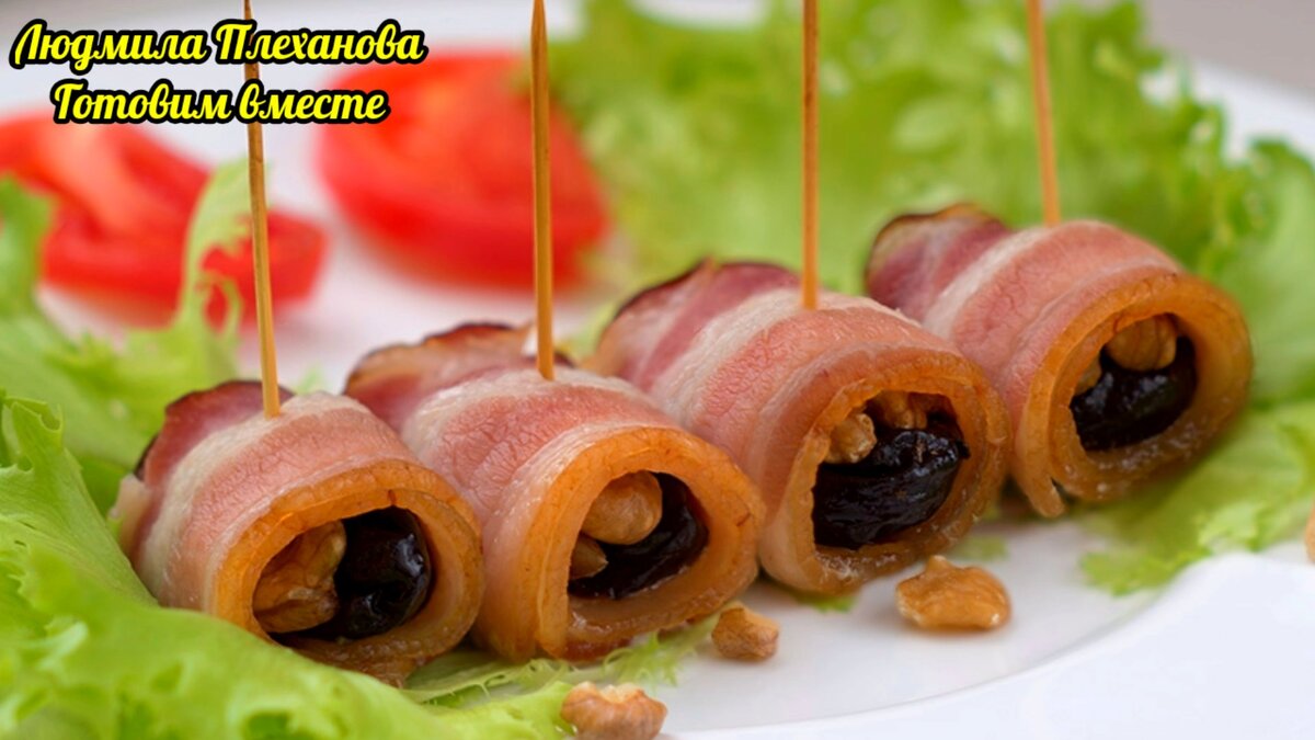 Рулетики из бекона с черносливом и грецким орехом - это вкуснейшая закуска, которая делается за считанные минуты. И поверьте, ваших гостей она точно покорит своим интересным и необычным вкусом. Я заранее заготавливаю эти рулетики (свернул, заколол зубочисткой - и готово), и ставлю их в духовку перед самой подачей на стол, а через 15 минут горяченькие рулетики тут же "разметают" со стола. Поверьте, это очень вкусно 😋