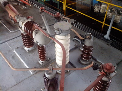 В разрядниках РМВУ-3,3 и РМБВ-3,3 при напряжении контактной сети до 4 кВ ток утечки составляет 100-300 мкА. При перенапряжении 7,5-9 кВ искровые промежутки пробиваются. После прохождения волны перенапряжения и снижения напряжения контактной сети до номинального сопротивление вилитовых дисков увеличивается до 140-160 Ом, ток падает до 25-30 А. При этом дуга на искровых промежутках растягивается под действием магнитного поля постоянных магнитов и разрывается. Для предотвращения взрыва фарфорового кожуха под значительным давлением газов, возникающих в разряднике в случае его повреждения, в днище 16 установлен предохранительный клапан 19, который открывается при определенном давлении внутри кожуха.
