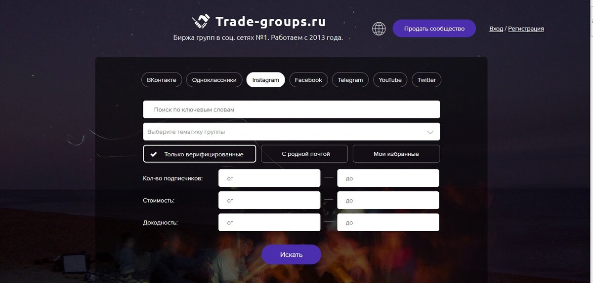 Для начала идем на биржу (коих в рунете множество, не нравится мой пример - ищите сами) https://trade-groups.ru/vk
