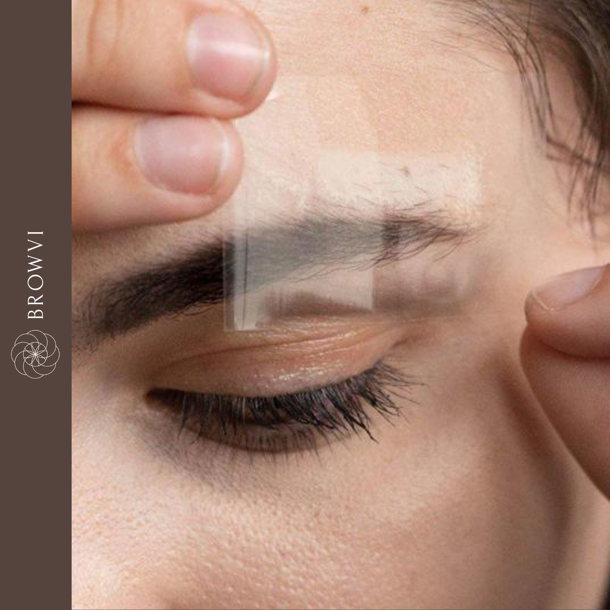 - Поместите полоску на удаляемую часть брови и приклейте ее