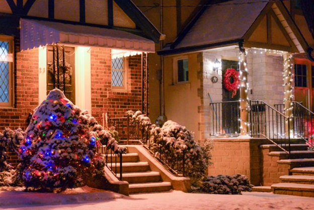 Можно украсить деревья во дворе, фасад дома.