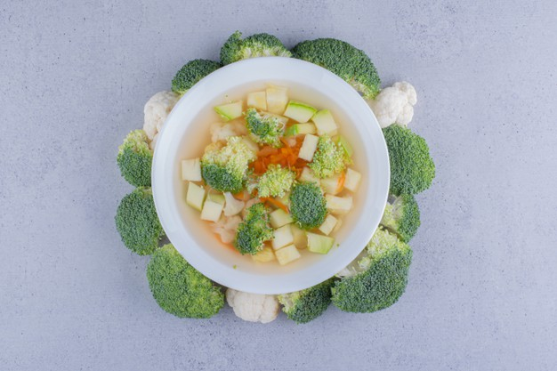 Очистите морковь, петрушку и сельдерей и нарежьте их половинками. Разделите цветную капусту на маленькие соцветия. Выложите овощи в кастрюлю и залейте водой. Добавьте чеснок, выжатый через пресс. Варить 15 минут и всыпать пшено. Варить еще 15 минут. Добавить тертый пармезан, измельченный укроп и лимонный сок. Приправить солью и перцем. Готово 🙂