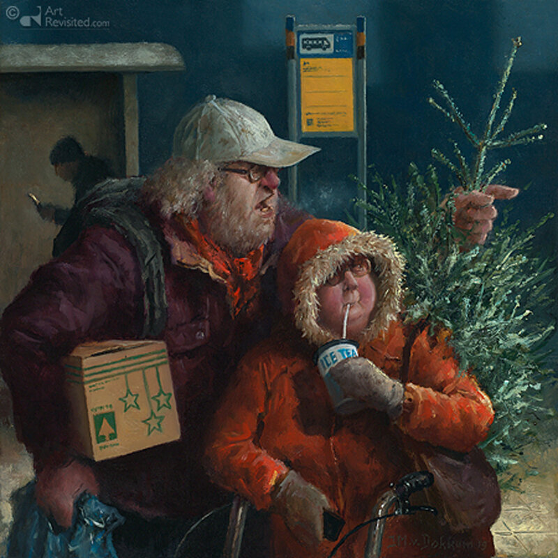 Очень много картин Мариус ван Доккум посвятил престарелым семейным парам, их взаимоотношениям, забавным конфликтам и скромному быту. Возможно, кому-то жизнь в Голландии и рисуется раем земным, но, думаю, у большинства людей она такая же сложная, как у нас. И даже бойцовым пенсионерам приходится нелегко.