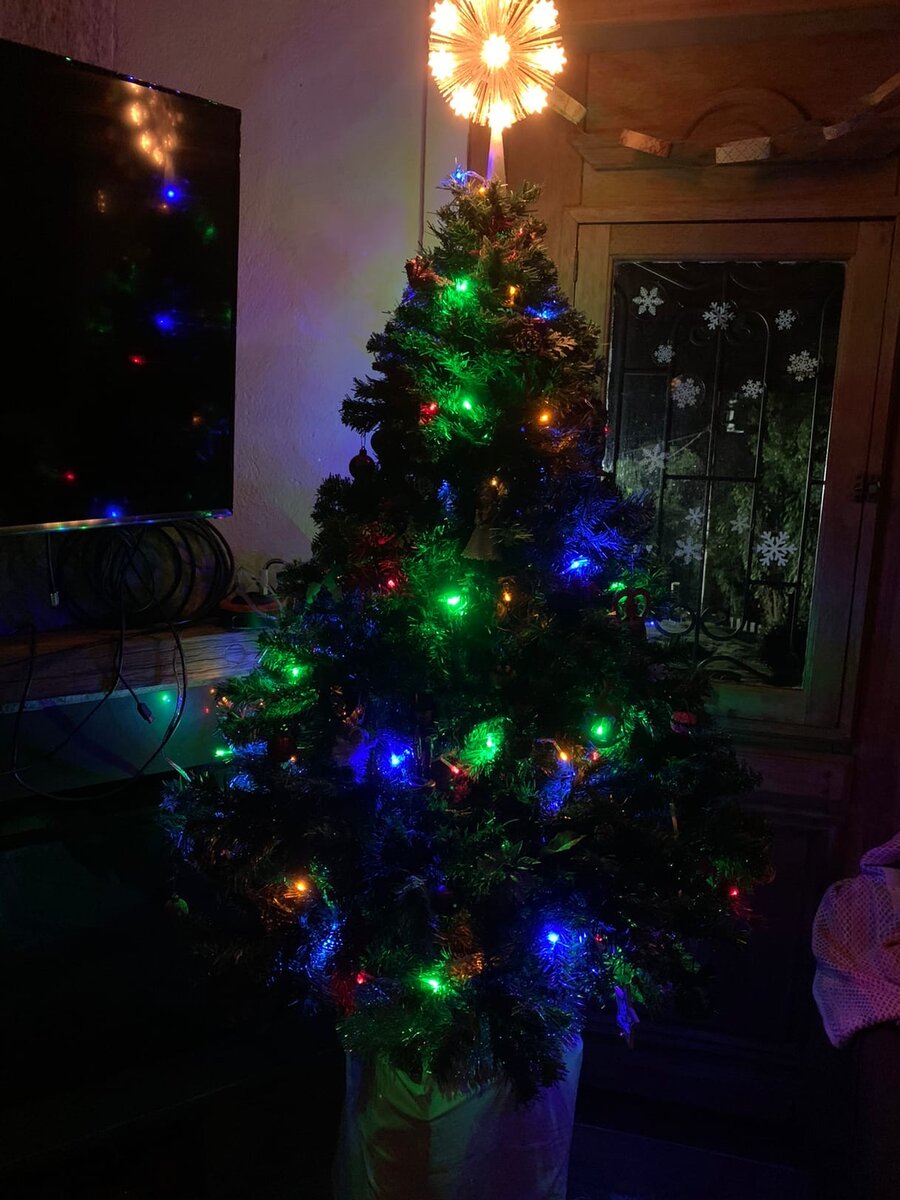 Тем не менее, настроение у нас праздничное. Любуемся на нашу елочку и радуемся. Как же сказочно она смотрится. Особенно в темноте.