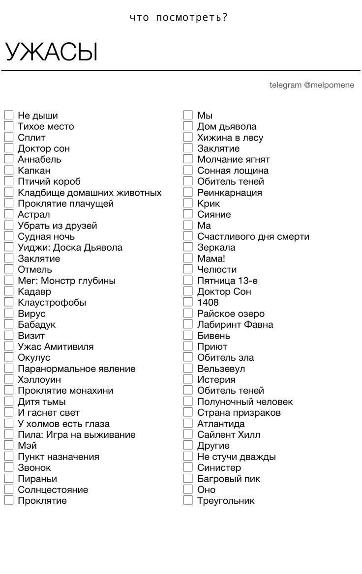 Список фильмов в жанре хоррор, которые должен посмотреть каждый. Отмечай, что уже посмотрел ☺️