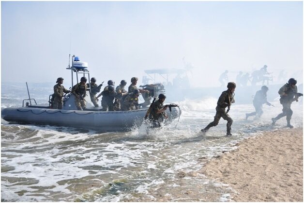 Для проведения учений был подобран участок береговой линии, напоминающий, по рельефу, тот, где расположен