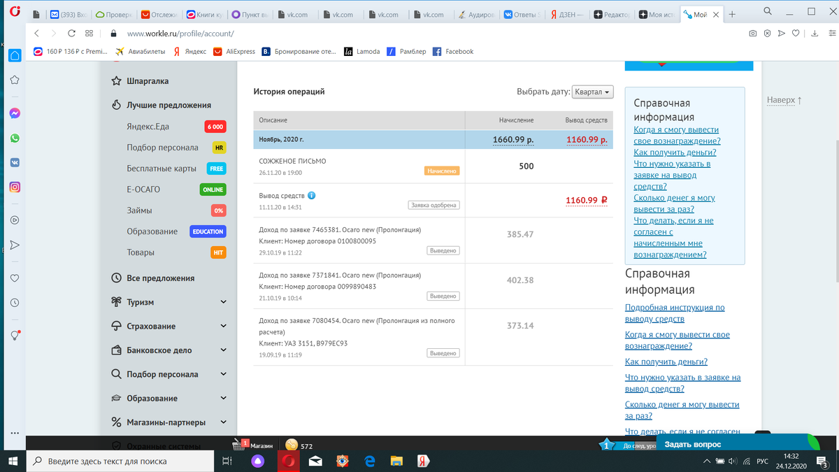 На скриншоте ниже можно посмотреть, сколько я заработала за квартал за 3 полиса Е-ОСАГО. Всю сумму вывела себе на карту. Это мой второй вывод.