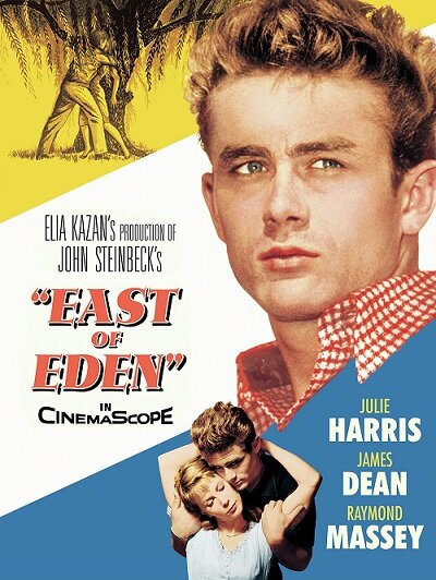 Фильм "К востоку от рая" можно охарактеризовать как звездный. Великолепный режиссер (без шуток) Элиа Казан, в главной роли - знаменитый Джеймс Дин, в остальных ролях - также известные актеры, сценарий написан по книге Стейнбека, лауреата Пулитцеровской премии на момент съемок и будущего лауреата Нобелевской премии (получит ее в 1962 году).