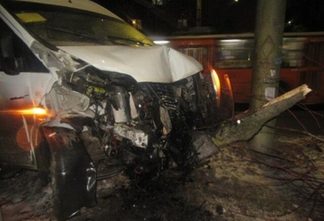 После столкновения оба автомобиля врезались в деревья.
