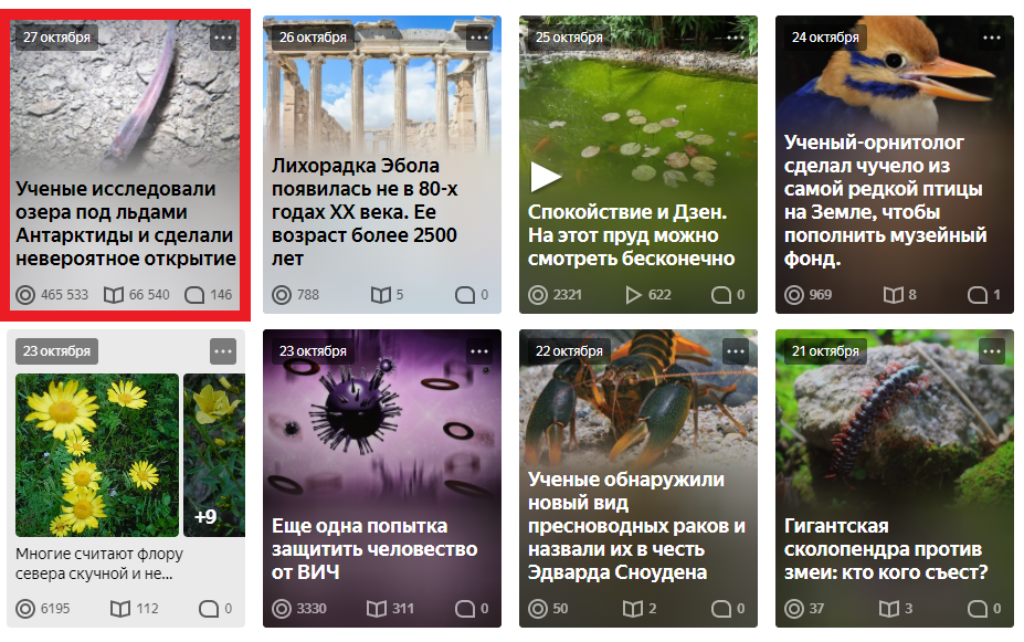 Друзья, в октябре 2020 году у нас вышла статья "Ученые исследовали озера под льдами Антарктиды и сделали невероятное открытие". Эта статья переводная, не наше собственное сочинение и изыскание, взята она была из немецкой публикации. Эта статья вызвала интерес у аудитории. Статья в ленте фигурировала больше 450 000 раз. Ее прочитало около 66 000 человек.