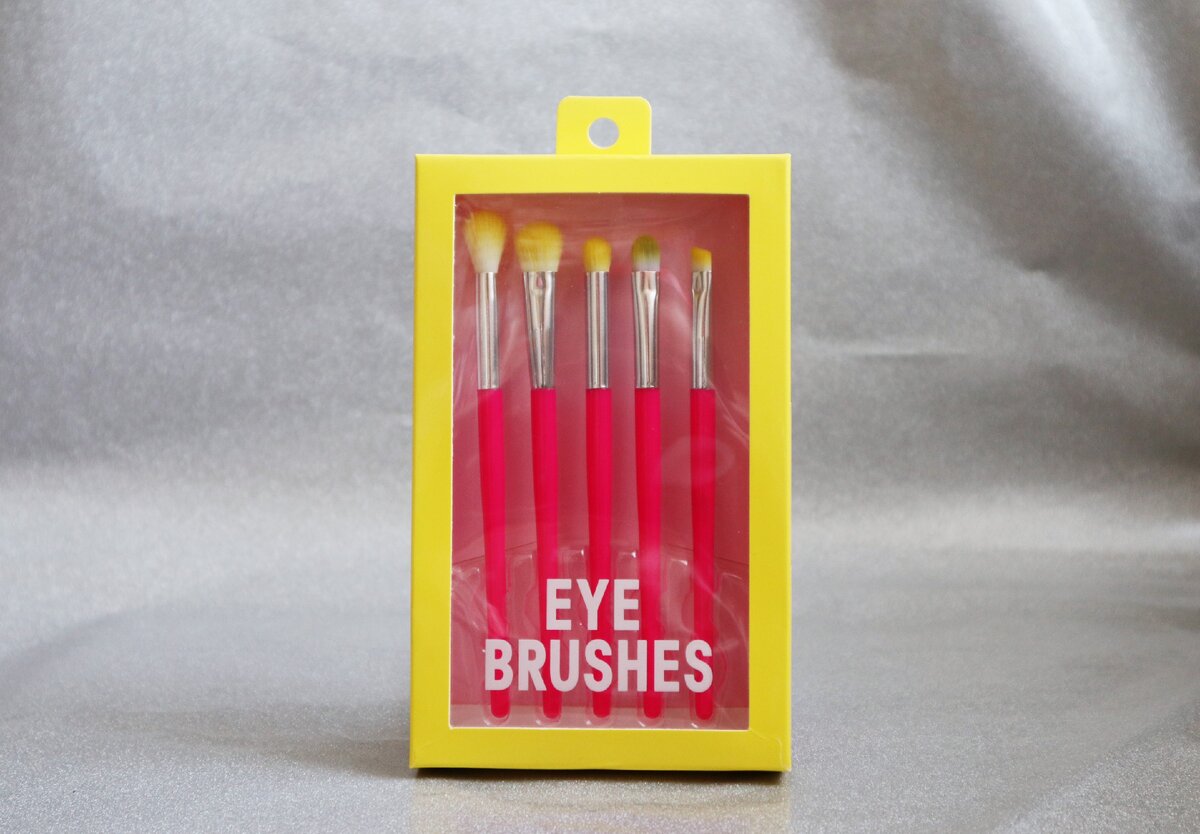 Упаковка у кисточек яркая, как и они сами. Я бы даже сказала, что это очень модные оттенки, не заметить их на стенде очень сложно. С обратной стороны упаковки была наклейка с информацией и подписи, для чего какая кисточка нужна. Хоть и на английском, но перевод легко посмотреть в интернете, а для тех, кто уже знаком с макияжем, назначение каждой кисточки и без подписей известно.