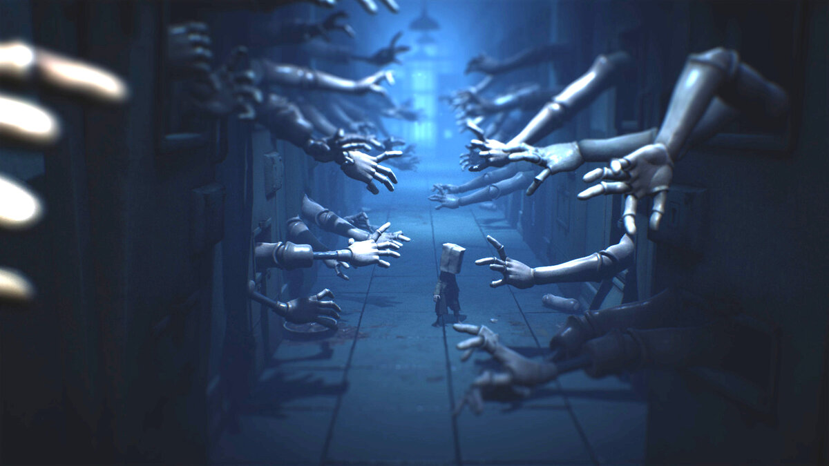 Атмосферой ужаса здесь пропитан каждый пиксель игры. И если кошмары должны быть «маленькими», то в Little Nightmares 2 все нарисовано и показано по-взрослому. Даже не знаю, насколько уместен ценз в 16+ в купе с отрывающейся рукой старушки, больше похожей на мумию или сценой из игры, изображающей ужин семьи, чем-то напомнившей мне знаменитых Бейкеров из Resident Evil 7.