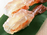 3. Креветки разморозить и выложить по 2 штуки на каждый брусок риса.