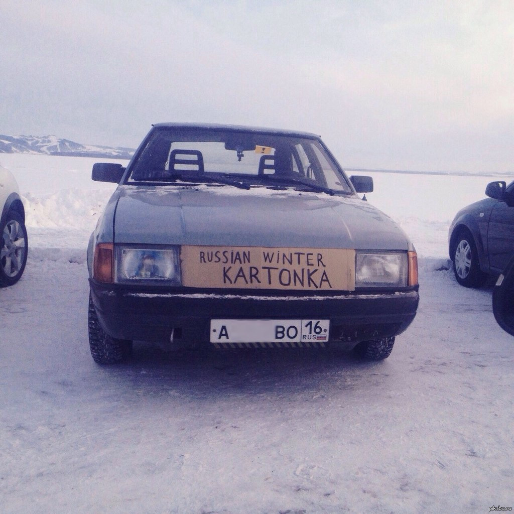 Наверное каждый зимой видел стоящую машину (обычно Ваз) с картонкой в переднем бампере.
