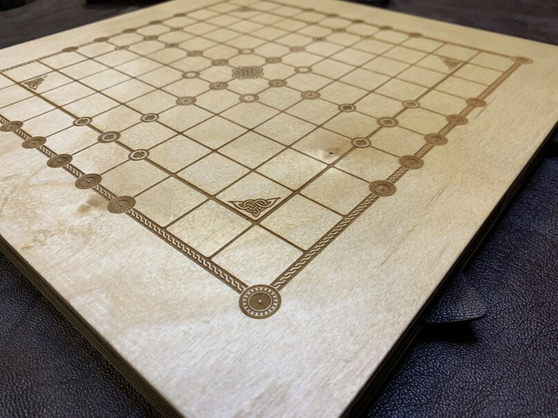 В варианте, предложенном нашей мастерской, вы можете сыграть на выбор либо в Хнефатафл (с полем 11х11 линий, с вариантом правил “Фетлар”, как наиболее сбалансированный), либо в Таблут (игра, с которой и началось возрождения всего семейства Тафл)