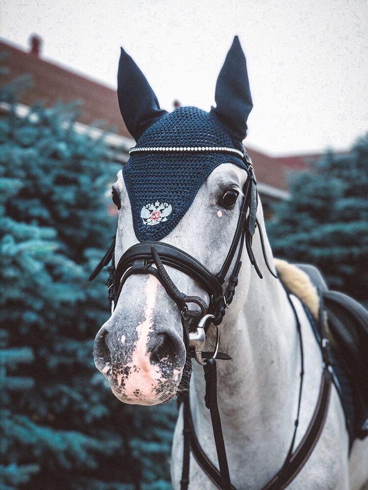 — защитить от мелких раздражителей (мух, капель, пыли). Так уж создала природа, что такие большие животные, как лошади, очень сильно страдают от таких мелких раздражителей. И для лучшей концентрации лошади на рабочих задачах – ушки один из самых незаменимых элементов экипировки. Тем более, что некоторые модели имеют кисточки по краю шапочки, которые защищают от насекомых и глаза лошади.