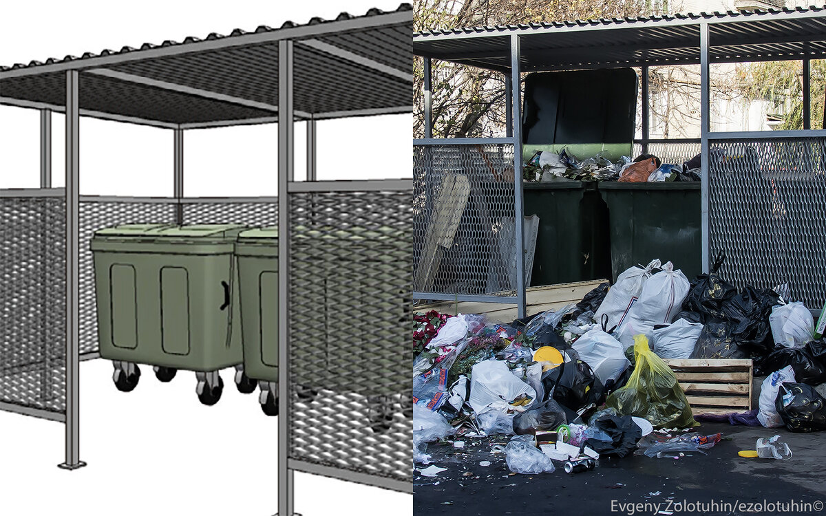 Еще в проекте есть вот такие комплексы для отходов, мусорки, если говорить простым языком. И их уже начали устанавливать, но внезапно что-то пошло совсем не так...