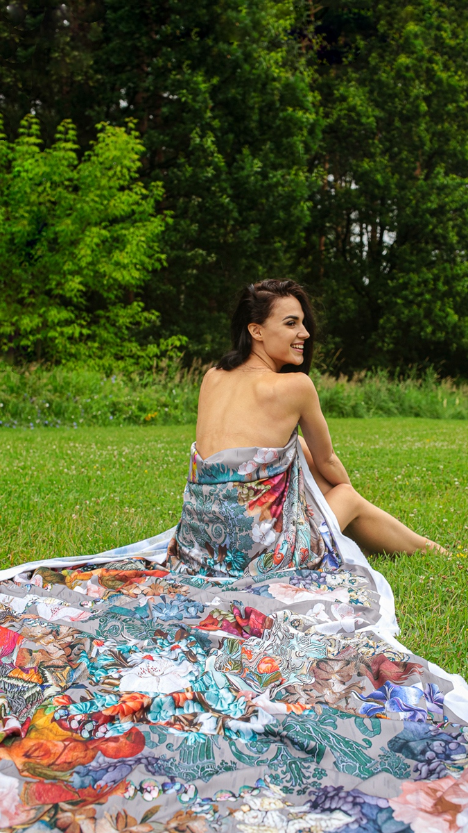 Идеальный подарок на Новый год, например. 1 отрез = 2 платка. Экономненько. Скорее, шаль по размерам. Или все же платье с очень простым кроем? Или платки на подарки? А чего это я за вас решаю? Сами справитесь.