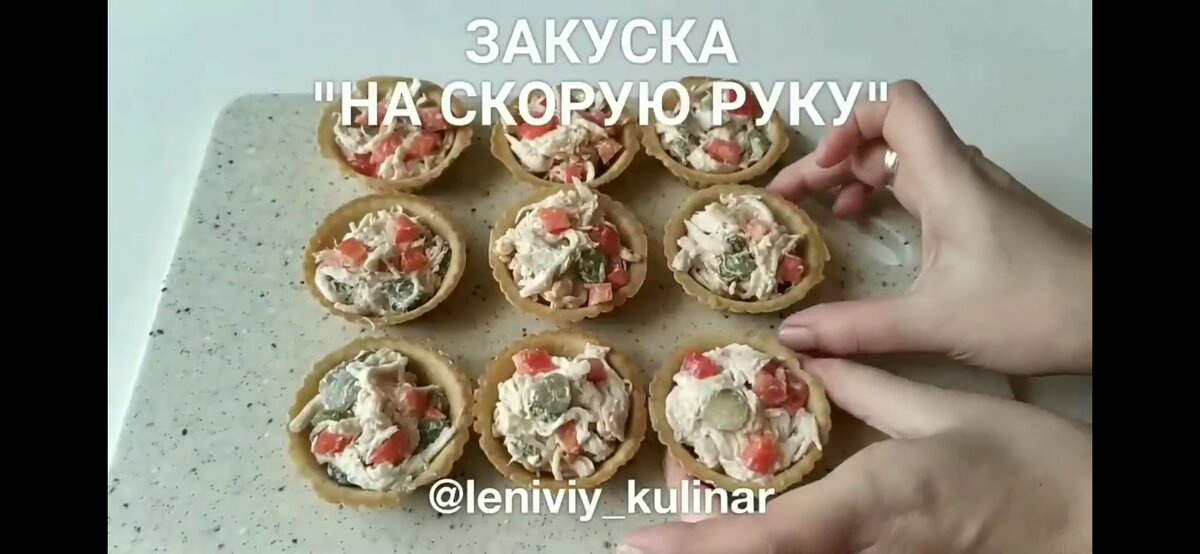 Разбираем куриное филе на волокна, добавляем огрурчики , перец и плавленый сыр. Выкладываем в тарталетки. Готово😉