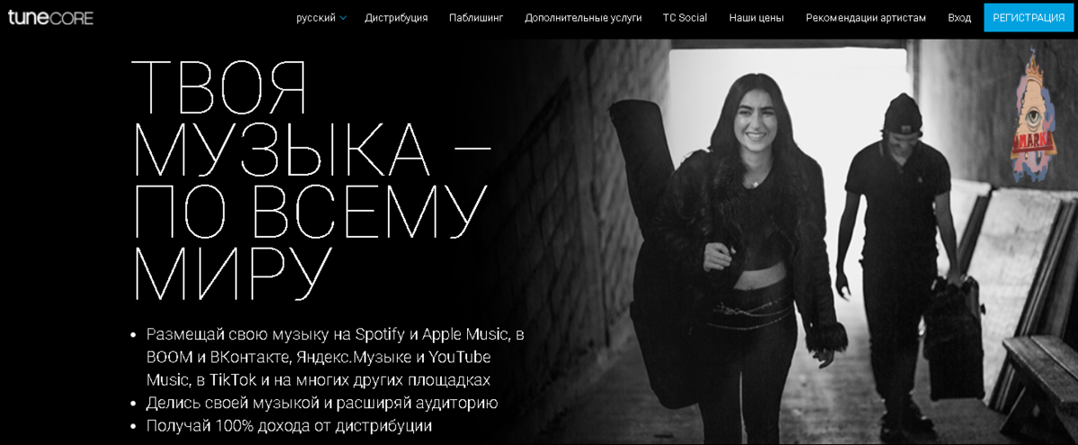 Для российского сегмента: размещение в Яндекс.Музыке. Нет официального представителя на российском рынке, поэтому в мобильном приложении зарегистрироваться не получится.