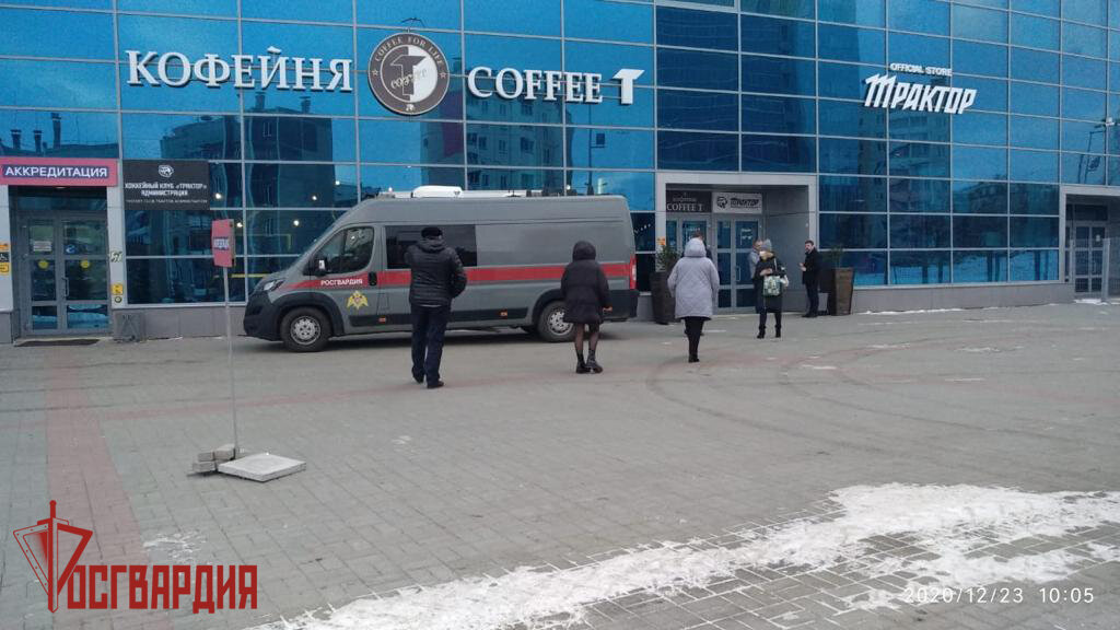 Сотрудники челябинского ОМОН областного управления Росгвардии принимают участие в охране общественного порядка и общественной безопасности во время проведения чемпионата России по фигурному катанию, проходящего в эти дни в столице Южного Урала на ледовой арене «Трактор».
