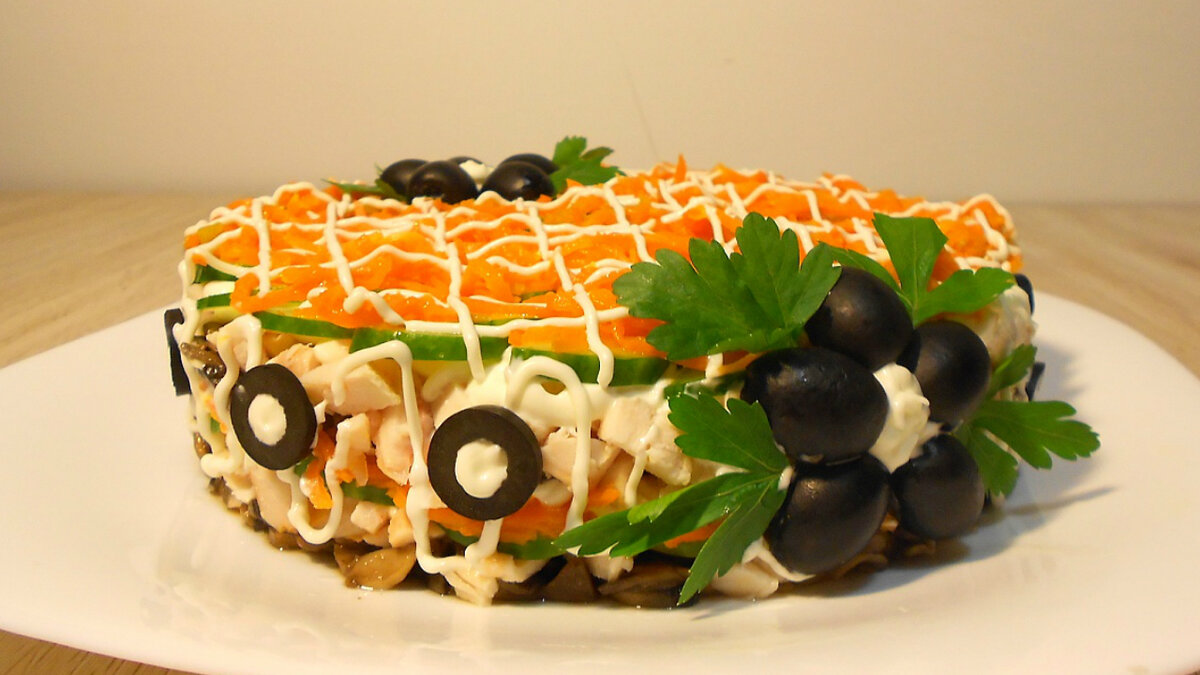 В преддверии Нового года спешу поделиться с вами ещё одним рецептом вкусного салата, способным занять достойное место на праздничном столе!