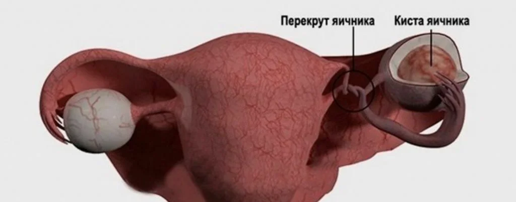 - Перекручивание кисты. В этом случае новообразование не лопается, однако перекручивается связка, которая соединяет пораженный яичник с маткой. Из-за этого нарушается кровоснабжение органа, что приводит к его атрофии и, как следствие, нарушению репродуктивной функции.