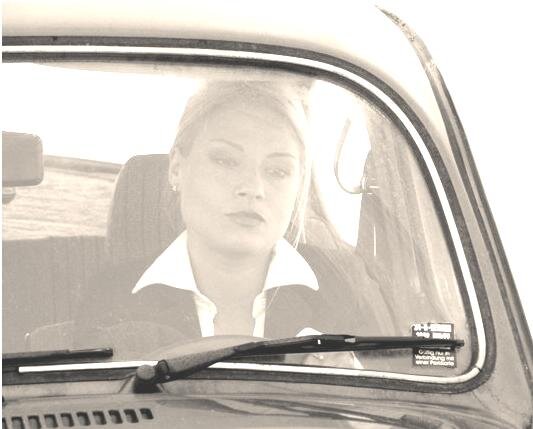 Закончив поиски, блондинка выпрямляется с сумочкой в руках, снова долго извивается, поправляя свою одёжку. Со второго раза захлопывает дверцу и облегчённо вздохнув, отправляется по своим делам.