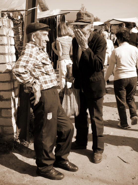 Рядом с моей точкой торговал мужскими брюками очень общительный дедушка.