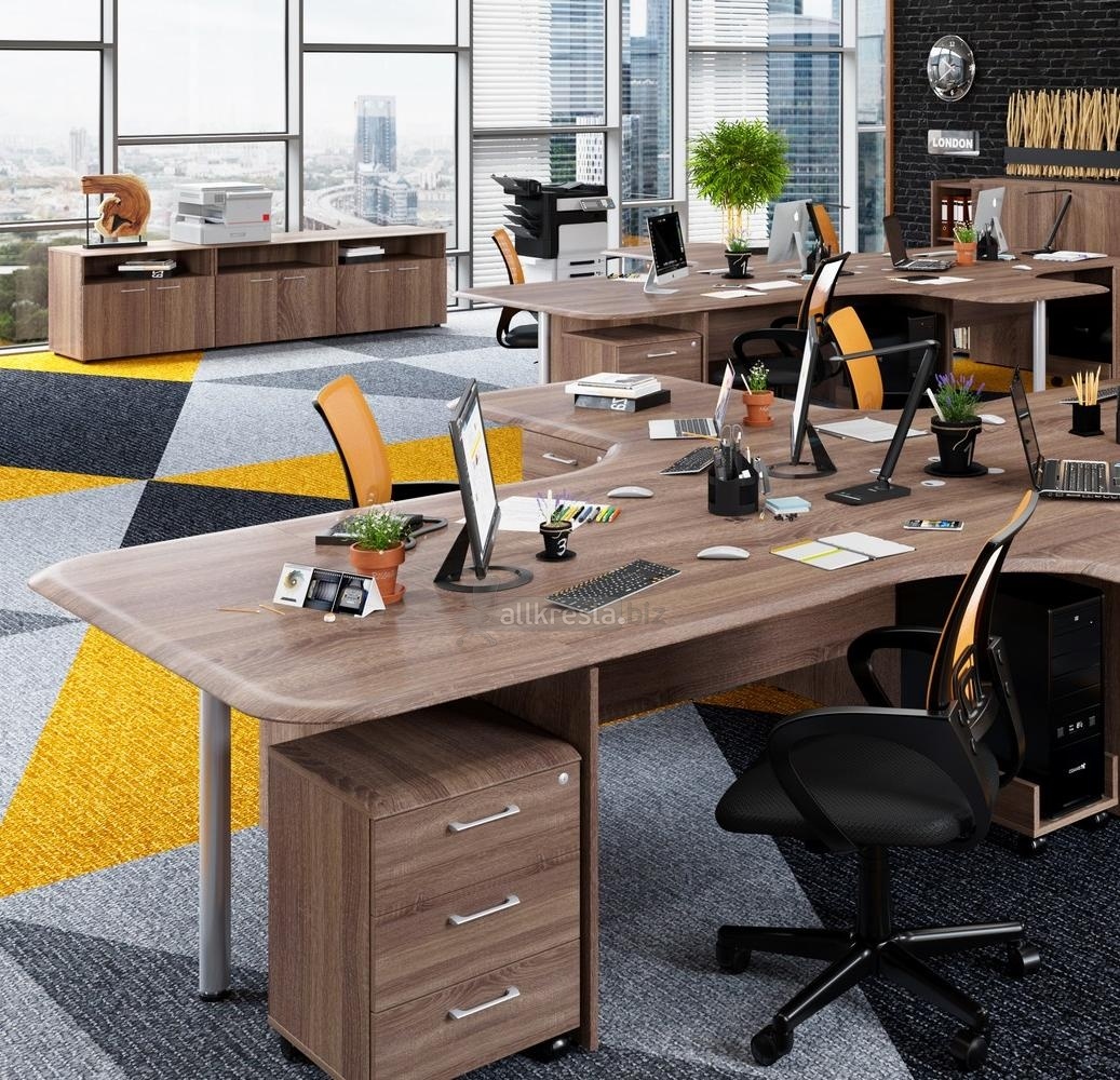 Стабильно работающей организации, которая хочет поменять интерьер, понравится мебель серий «Арго», «Альтернатива», «Space». Толщина столешниц, топов шкафов и тумбочек 22 мм, придаст офису солидный и привлекательный вид.