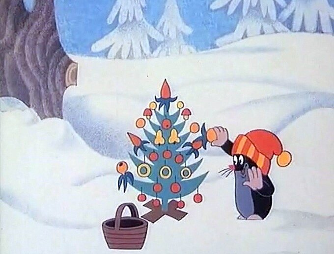 1. Чешские мультфильмы: «Кротик и Рождество» (1975) и «Кротик и Снеговик» (1998). В первом мультфильме вредная ворона съедает праздничную ёлку и кротик покупает искусственную. Вторая история про снеговика, который стал таять с наступлением весны, но кротик придумал, как его спасти...