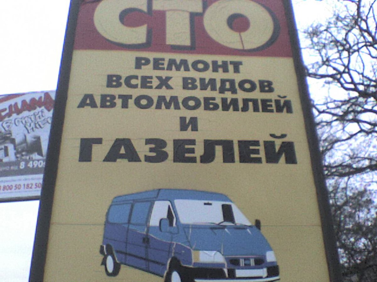 Читаешь текст на рекламном щите и думаешь: «То ли «Газель» автомобилем не является, то ли животных – газелей, ремонтируют»… Не знаю, стоит ли эта реклама сейчас или нет. Кто знает, напишите.