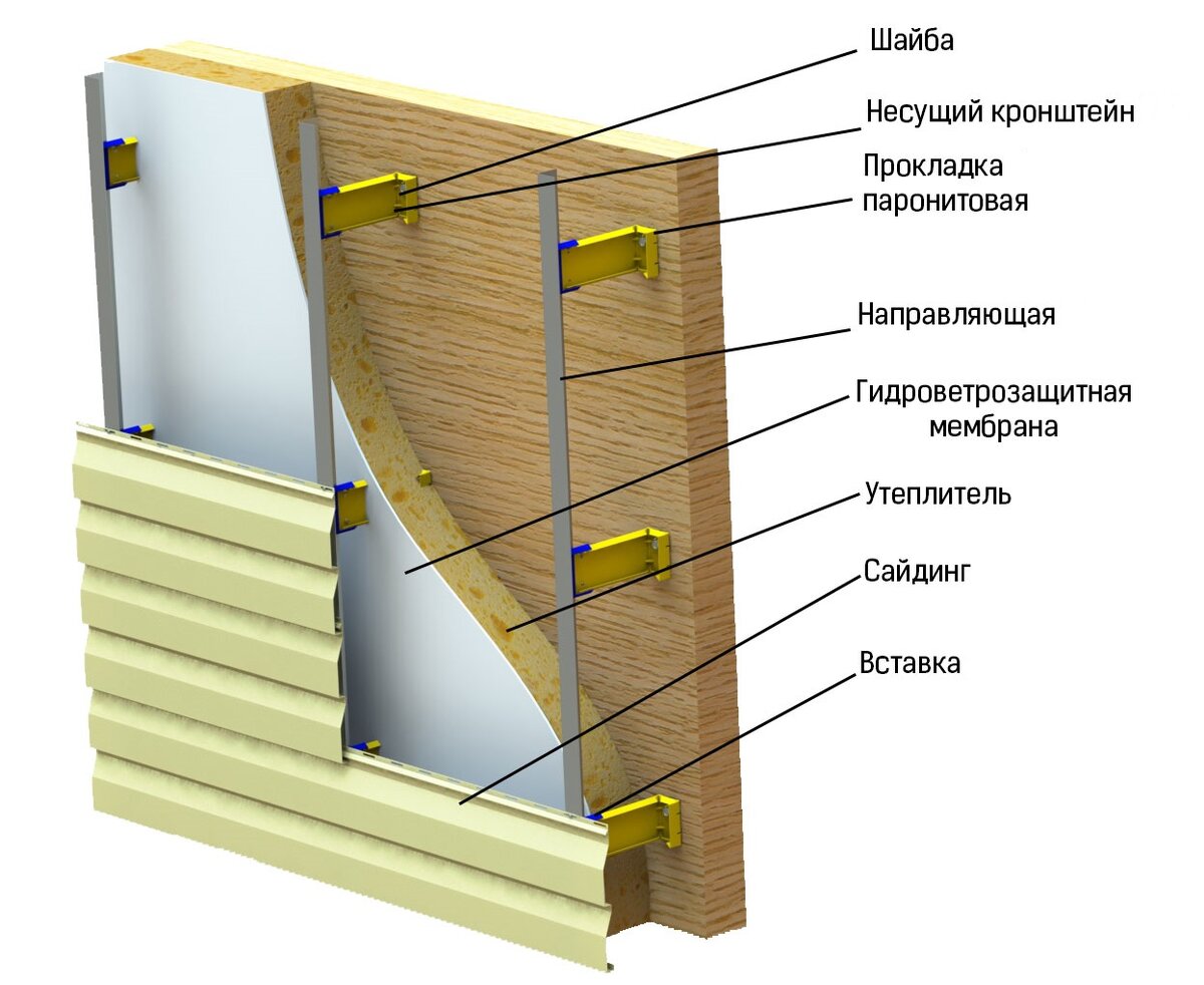 Принцип монтажа сайдинга заключается в фиксации панелей к обрешетке путем закрепления саморезов (на панели присутствуют соответствующие отверстия), а между собой панели соединяются при помощи замковых конструкций, которые располагаются на верхней и нижней частях панелей.
