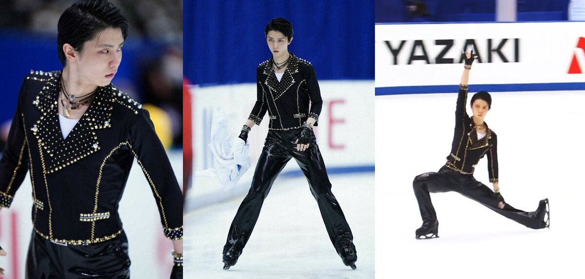 Момент, когда Юдзуру снял свою спортивную куртку и показал всем новый костюм - можно сравнить с эффектом взорвавшейся бомбы. Никаких типичных рюшей, воланов, обилия страз и плюшевых штанов - это рок, детка! Похоже Юдзуру решил встряхнуть стариной и вспомнил времена своей "молодости", и старые показательные номера.