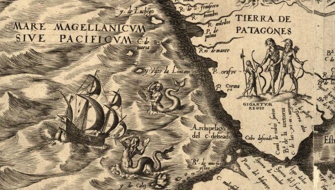 Интересное описание великанов можно найти в книге Гонсало Фернандеса де Овьедо и Вальдеса, с длинным названием как и его имя "Всеобщая и естественная теория Индии, островов и материка моря, океана". Овьедо (1478-1557), испанец живший в Италии. Его называли первым " испанским историографом Америки". В 1514 году он отправился в Новый Свет, где участвовал в экспедиции на побережьях Центральной Америки, освоением земель Золотой Кастилии (Панама, Коста Рика), жил на Антильских островах и Венесуэле. В своем рассказе про великанов Овьедо, который не был участником этих событий, он написал главы про великанов со слов священника-миссионера дона Хуана де Арейсага. Действие происходит в Магеллановом проливе в 1526 году, который открыл Магеллан в 1520 году, Корабль на котором был священник, разобьётся в бурю, экипаж спасется. 3 матроса и дон Хуан пойдут по суше искать корабли которые шли впереди них. На четвертый день они наткнулись на множество патогонских хижин, а патогоны описывались с рост