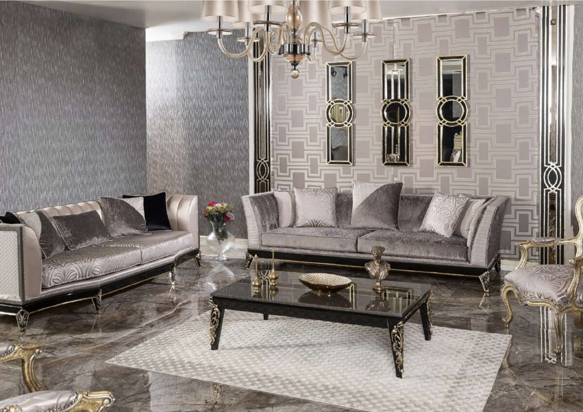 Основные черты: золотая лепнина, насыщенная цветовая гамма, шелкография и бархат в отделке, обилие декоративных элементов.