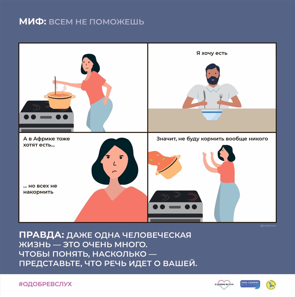 Мы познакомили вас с комиксами, в которых постарались развенчать мифы о благотворительности и волонтерстве. В забавных и философских сценках мы раскрыли основные противоречия, связанные с благотворительной деятельностью и добровольчеством.