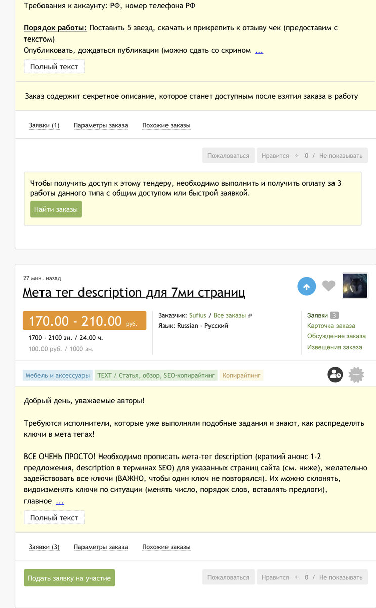 Однако, после успешного прохождения теста, снова не все задания становятся доступными для выполнения - все же заявки на тендеры могут быть отклонены.