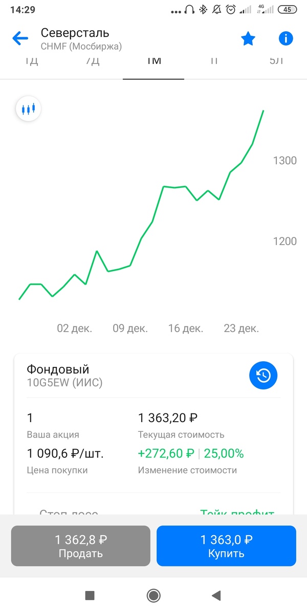 Северсталь вообще показала прекрасные результаты, и выросла на 25% от покупки 9 ноября.