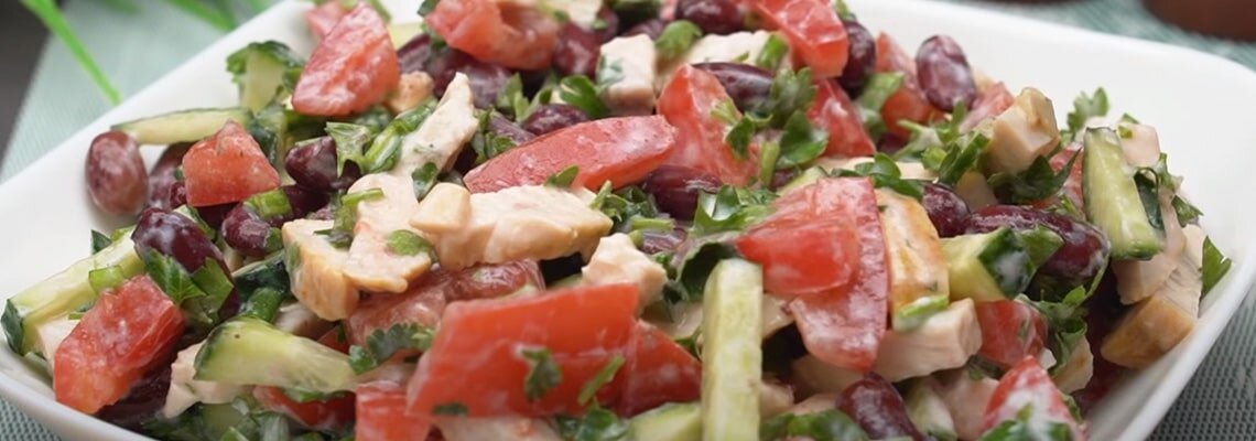 Этот лёгкий салатик влюбит в себя ваших домашних и гостей. Готовиться он очень просто и из самых доступных ингредиентов. Салат «Праздничный» с фасолью отлично подойдет как на праздник, так и на каждый день. В этом блюде отлично сочетаются овощи, мясо и зелень.