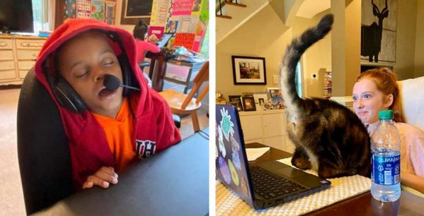 Обучение сегодня - вызов и для учителей, и для детей, и для родителей. Благодаря технологиям процесс дистанционного обучения становится проще, но не менее утомительным. Родители делятся в сети фотографиями своих детей, которые учатся через программу ZOOM.