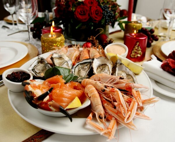 Парижане предпочитают устрицы, их продают со льдом. В канун нового года в Париже продают тонны устриц. Есть их французские гурманы предпочитают классическим способом. Не меньше восторга у парижан вызывает фуа-гра. Жирную печень, насильственным способом откормленных уток и гусей, с охотой едят и дети, и взрослые. Вообще, французов можно назвать поедателями морепродуктов. На новогоднем столе вы можете встретить множество закусок с креветками, мидиями, моллюсками и улитками. Есть и более знакомые блюда из копченого лосося. И, конечно, все это сопровождается шампанским, родиной которого является Франция.