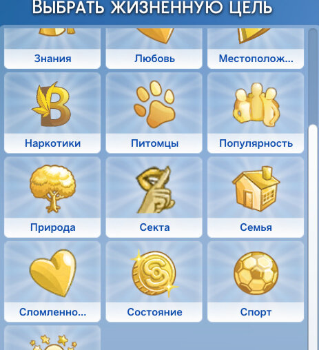 При входе в игру мы можем увидеть жизненную цель "Секта". Нажимаем и видим две иконки. Если коротко, то первая иконка - желание стать самым приданным секте, а вторая желание стать лидером