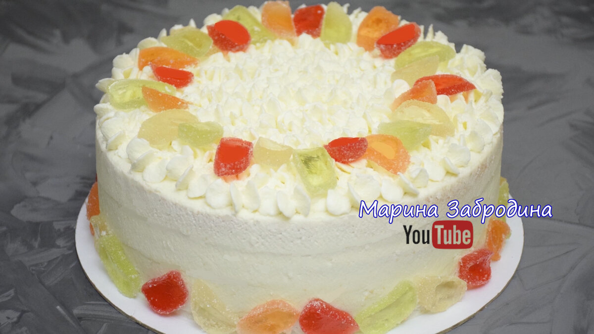 14. Осталось только украсить, можно использовать ягоды, фрукты, посыпки или разноцветный мармелад. Нарезаем на порционные кусочки и подаём к столу!