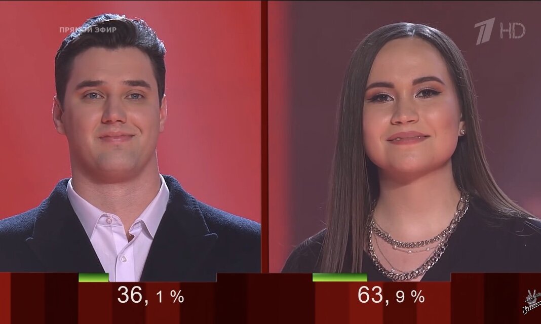 Очень рад, что хотя бы здесь голосование обошлось без сюрпризов. Полина Гагарина отдала Кириллу 40%, Яне 60%, а зрители голосовали так: