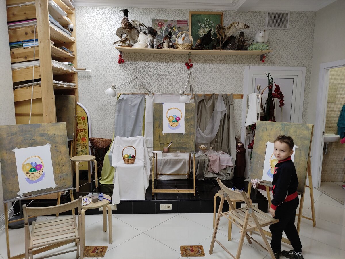 Новогодняя тема отразилась и в натюрмортах. Праздничная корзинка с шариками) Рисовали сначала карандашом, а после гуашью. На фото видно постановку и мольберт с моим вариантом рисунка. #рисование #рисунокспб #урокирисования #натюрморт