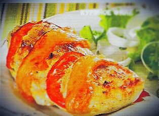 Заполняем курицу, в первый кладем ломтик сыра, во второй кладем помидорки, в третий опять сыр и в четвертый опять кладем помидор.