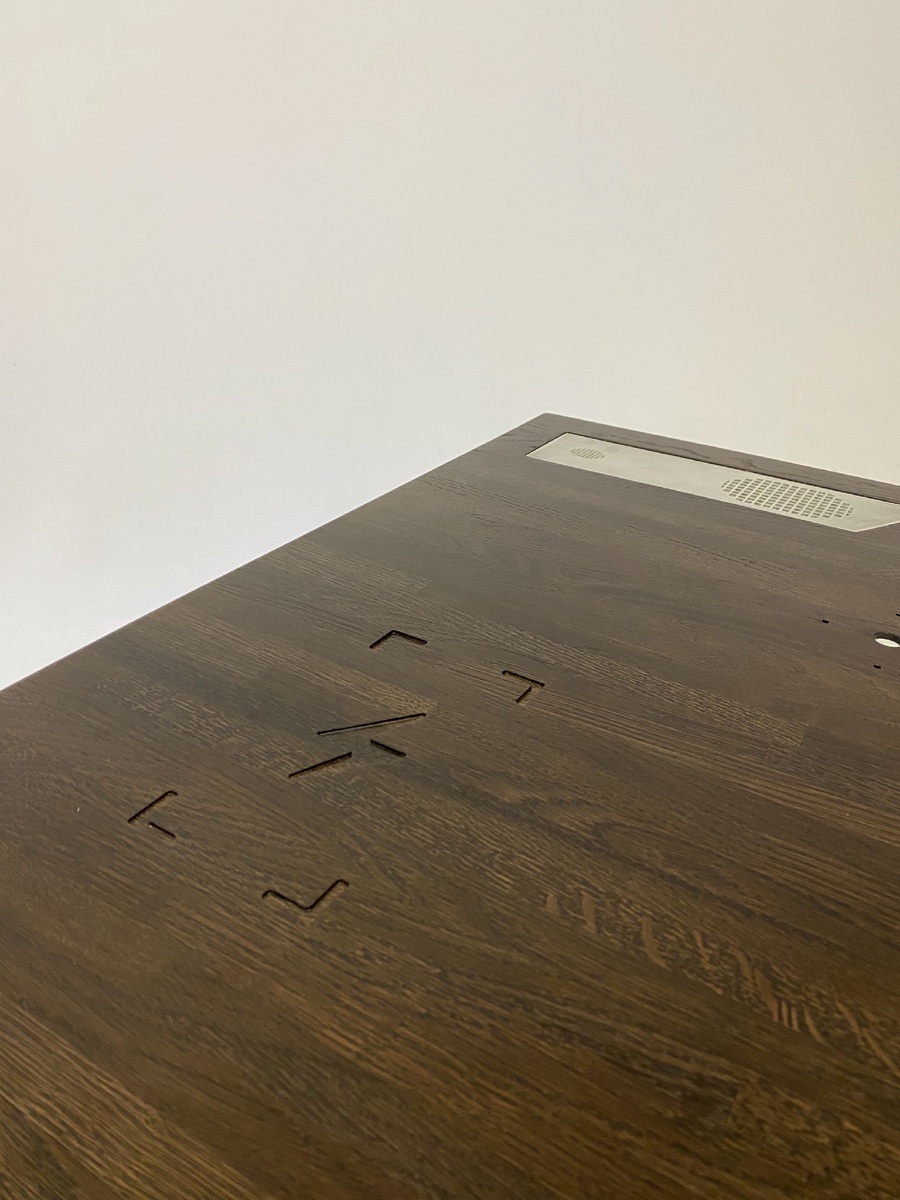 Ушло много сил, кто-то крутил у виска, кто-то говорил о том что его можно было разработать за вечер. Но нам очень не хотелось создавать очередной колхоз. Не найдя на рынке России и мира желаемые варианты было принято командой IWOOD.PRO создавать новый продукт. Задумаясь о продуктивности своей работы, мы поняли что качество рабочего пространства, напрямую влияет на результат, как хороший автомобиль на стиль жизни. (автомобилисты поймут) Не буду жаловаться в данной статье о сложностях данного стартапа, скажу лишь что, нервов потратили изрядно. Хоть и идея не новая, но как и многое в России, готовые продукты требовали хорошей доработки. По итогу, что мы сделал !? - Сделали стол из срощенного дуба толщиной 4 см, а не спресcованных опилок. - Установили высокомощные USB зарядки. - Установили титановые вставки. - Встроили блок управления в стол регулировки подстолье с 60 до 125 см. - Установили колонки мощностью 30 вт и Яндекс Алису. - Подсветка стола на пульте управления. - Подставка для тел